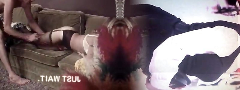 Blonde cum super-bitch rocking the crimson sofa
