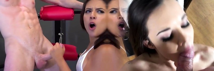 Fine femmes Jennifer Dark and Luna Starlet give double fellatio to Joey Brass
