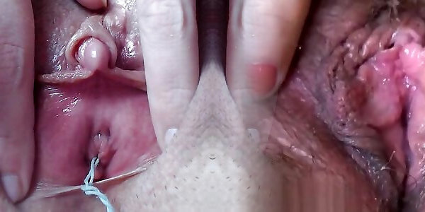 Extreme close-up onanism with phat nub humid climax
