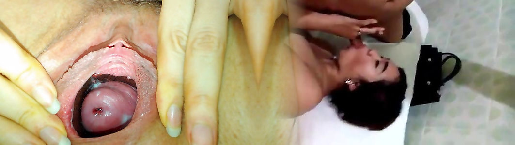 Dark Haired doc wide open with cum shot