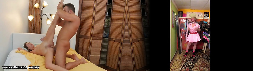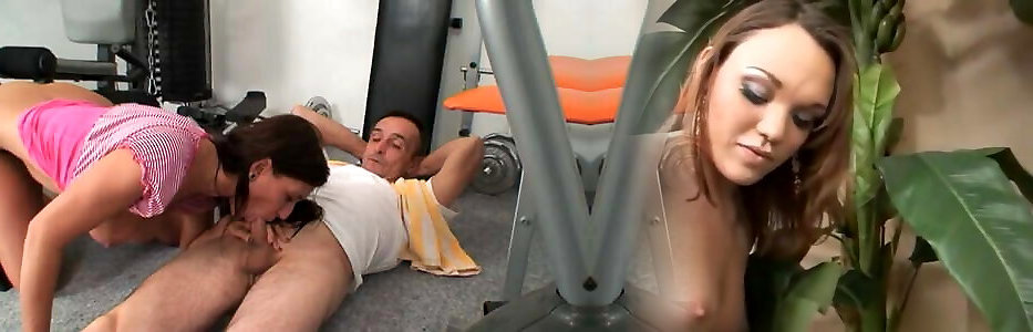 The nymph does gymnastics in the guest room and the sloppy old boy witnesses her