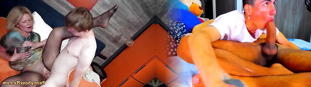 Classy mature blonde in dress gets fucked in her pantyhose by young boy