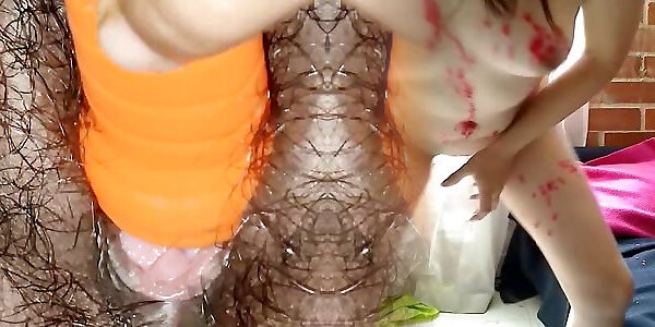 My stepbrother make my both holes creampie in doggy style