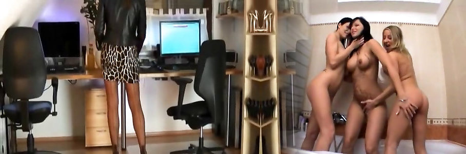Hard-core girl-girl female dom gig with classy stunners at an office