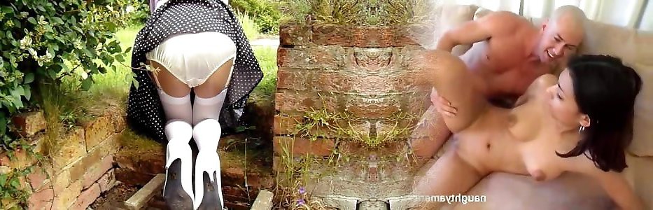 Milky Pantyhose And Satin Panties In The Garden