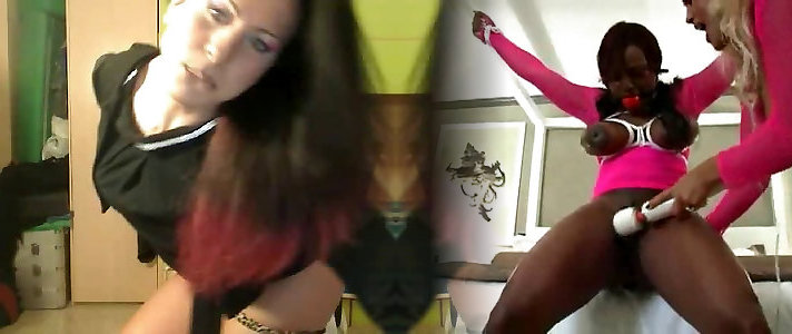 Ebony sits on her girlfriends face while a another slut licks her asshole on Webcam