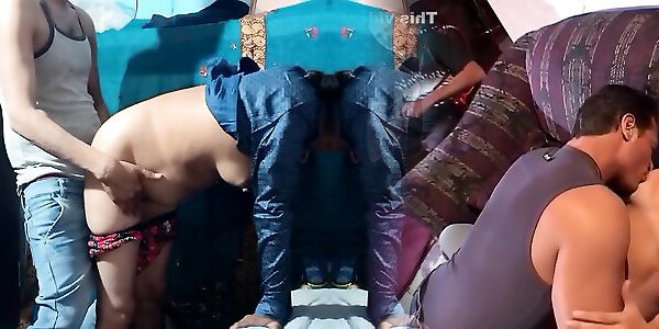 Desi Indian bhabhi has orgy after guzzling milk from her titties