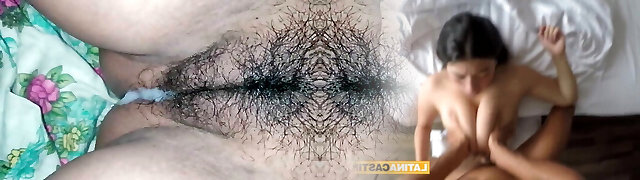 Eve Laina - Milf with a immense ass and hairy pussy, greedily rides a young cock.