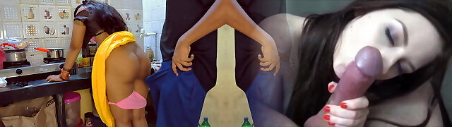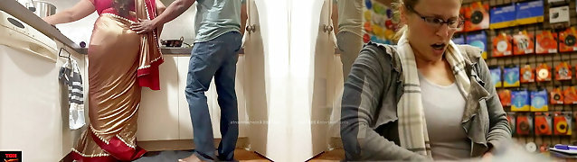 Indian Duo Romance in the Kitchen - Saree Bang-out - Saree lifted up and Ass Spanked