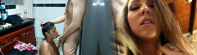 My stepmom inhales my dick in the kitchen