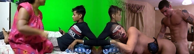 A stepmother wearing a saree She was hide witnessing me masturbating while watching porn flick