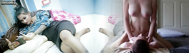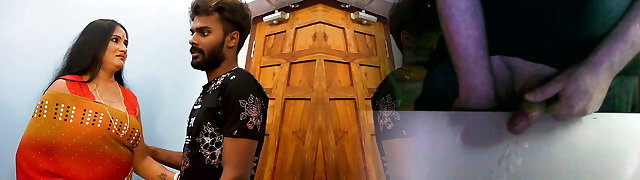 I was witnessing porn video on phone in bed room and holding penis in hand Tamil aunty Bavana came in shocked I pulled her and ha